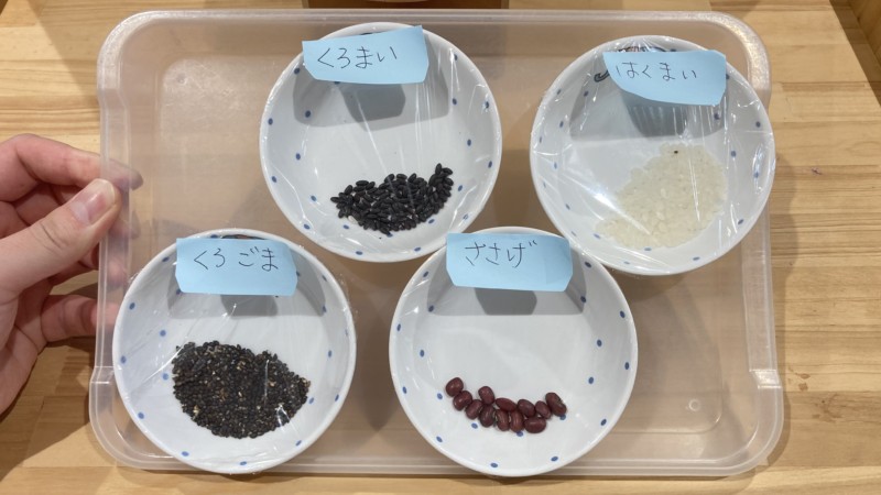 白米や黒ゴマと一緒に説明をしたら食べてくれました🙌