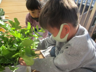 保育室の前の物は、葉がしんなりしてしまう様子もよく見え「かれこちゃんになっちゃう!」と以前トマトが枯れたことを思い出しながら、大切に育ててきました。