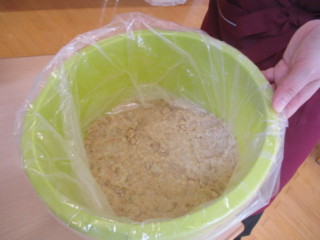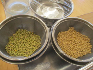 ビニール袋に入った、お水をたっぷり吸った大豆を