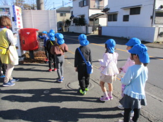 全員の年賀状が揃ったところで、みんなでポストに出しに行きました!