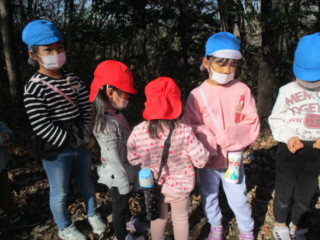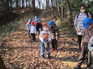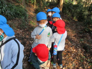 木の実はありましたが、キノコはヒラタケしか見つからず・・・(それでも4種類は見つけたのですが)「季節かな?」「(山道が)明るいからかな?」と考察する年長さん!