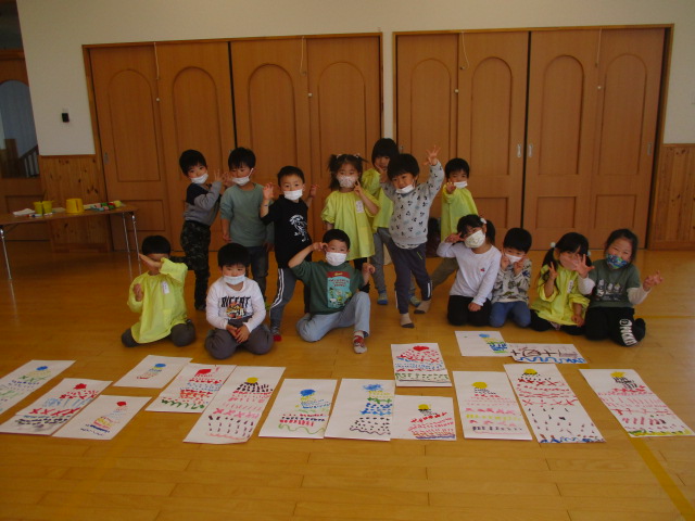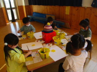 3グループに分かれて、それぞれのニット帽を置いて色を作りながら描いていきました。