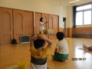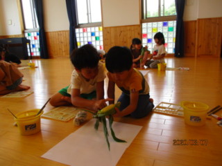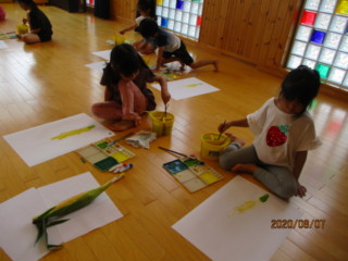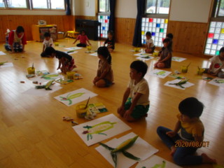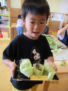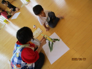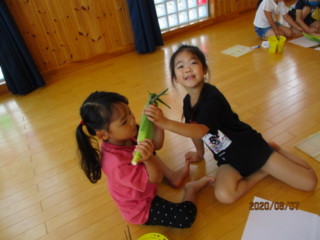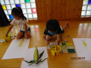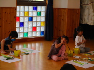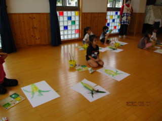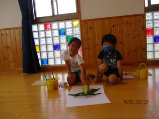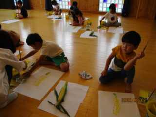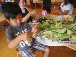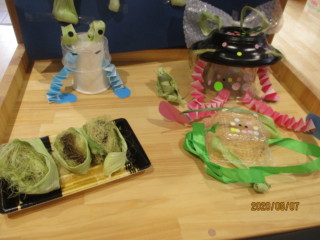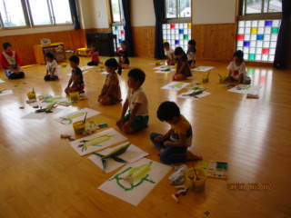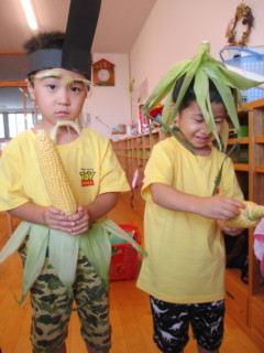 「とうもろこしだー」と喜ぶつばめ組!どうしたものかと考えるうぐいす組!同じものを見ても経験や年齢でとらえるところが違うのですね!