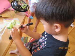 そして、気づいたのです!トウモロコシの頭にあるのに「ひげ」と言われることに!!!「こっちが下なんだよ!」ですって!目をキラキラさせて発表する姿が何ともかわいいです♡ということでひげにしてみました!