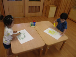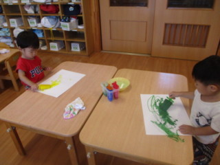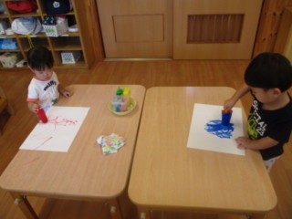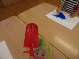 絵の具で色付けして凍らせた アイスキャンディーを使ってお絵描き!ぐるぐる
