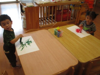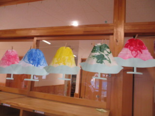 かき氷遊びを経験し、お部屋に飾られたかき氷に 「あ!」と指をさし喜んでいました🍧