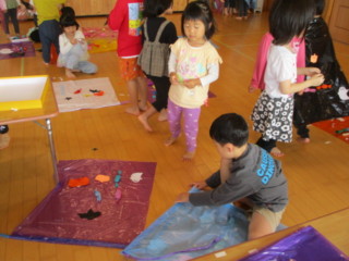 色んな素材を使って、カボチャやコウモリ、オバケ、キャンディーなど好きな物を制作✂✎ はとさんの作ってる物は特別カッコ良く見えて真似してみたり教えてもらったりしながら