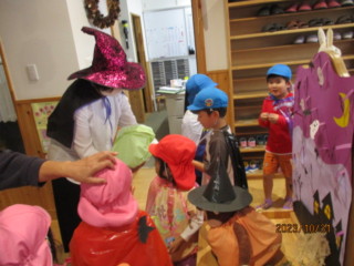 みんなで園長先生のところへ行ってみたら、なんと!園長先生も魔女に変身していてビックリ(*_*)