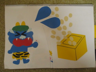 新聞紙のお豆で勇気を出して「おにはそと~!ふくはうち~!」