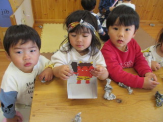 遅くなりましたが、やっと第三保育園でも豆まきができました✨