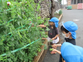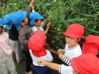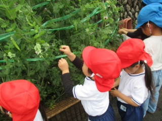 先日、サヤエンドウを収穫した子どもたちの様子です