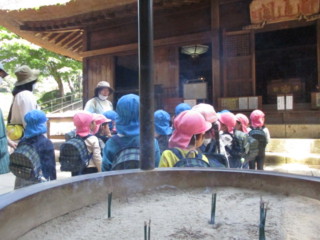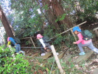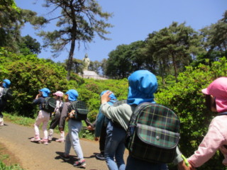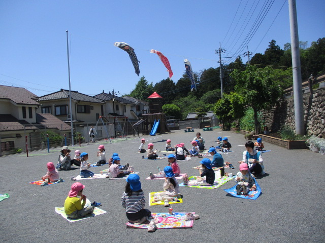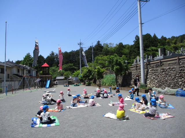 帰園後は園庭で給食の先生が作ってくれたお弁当を食べました!