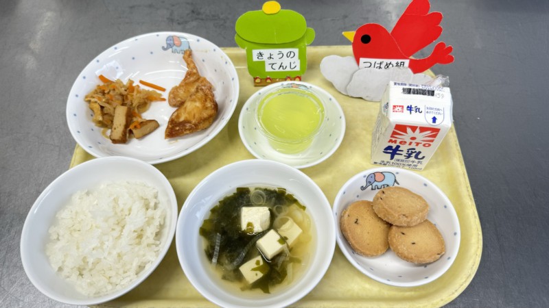 主食:ご飯(グリンピースご飯でしたがグリンピースが納品できなかったためご飯(白米)に変更しました)