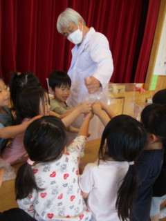 給水ポリマーや空気圧といった現象を遊びながら体験出来、みんなの好きなスライムも同じな事を体験的に教わりました!