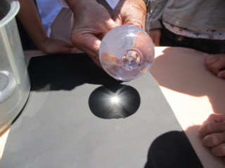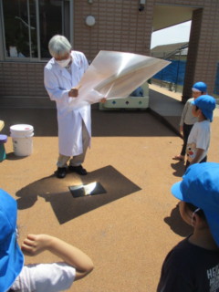様々なもので光を集めると・・・黒い紙から煙が!巨大フレネルレンズではアッという間に黒紙が・・・