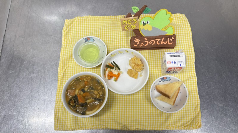 🌰今日は子どもたちの好きなカレーうどん♪おかわりに列ができるぐらいよく食べてくれていました😊