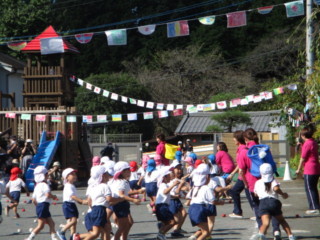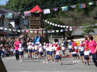 追いかけ玉入れ(つばめ組、うぐいす組、はと組)