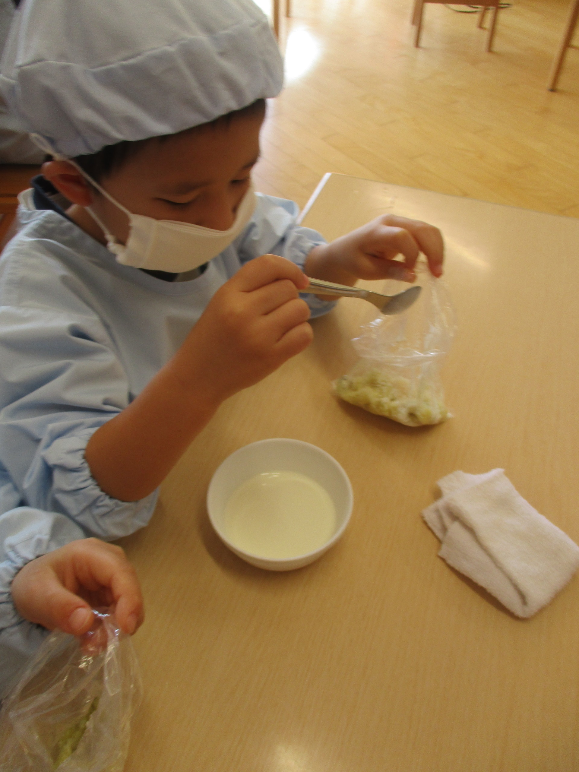 夏には何回もアイス作りをしたので、モミモミ、まぜまぜは慣れてきました