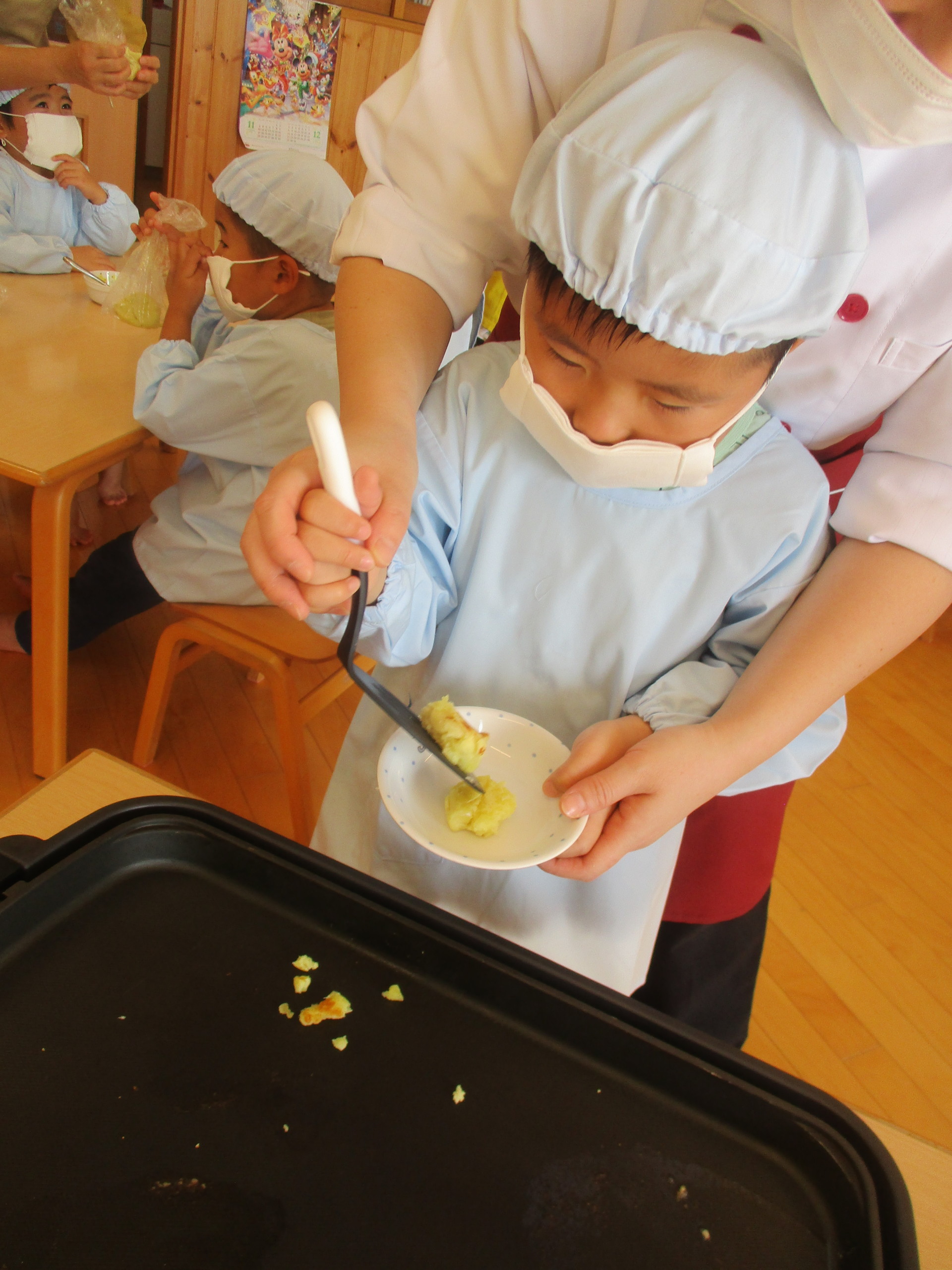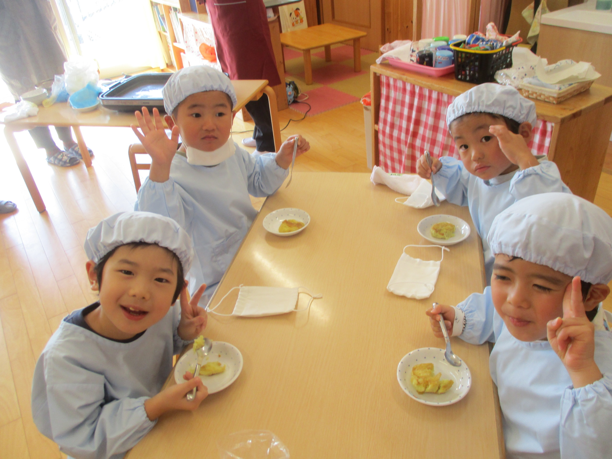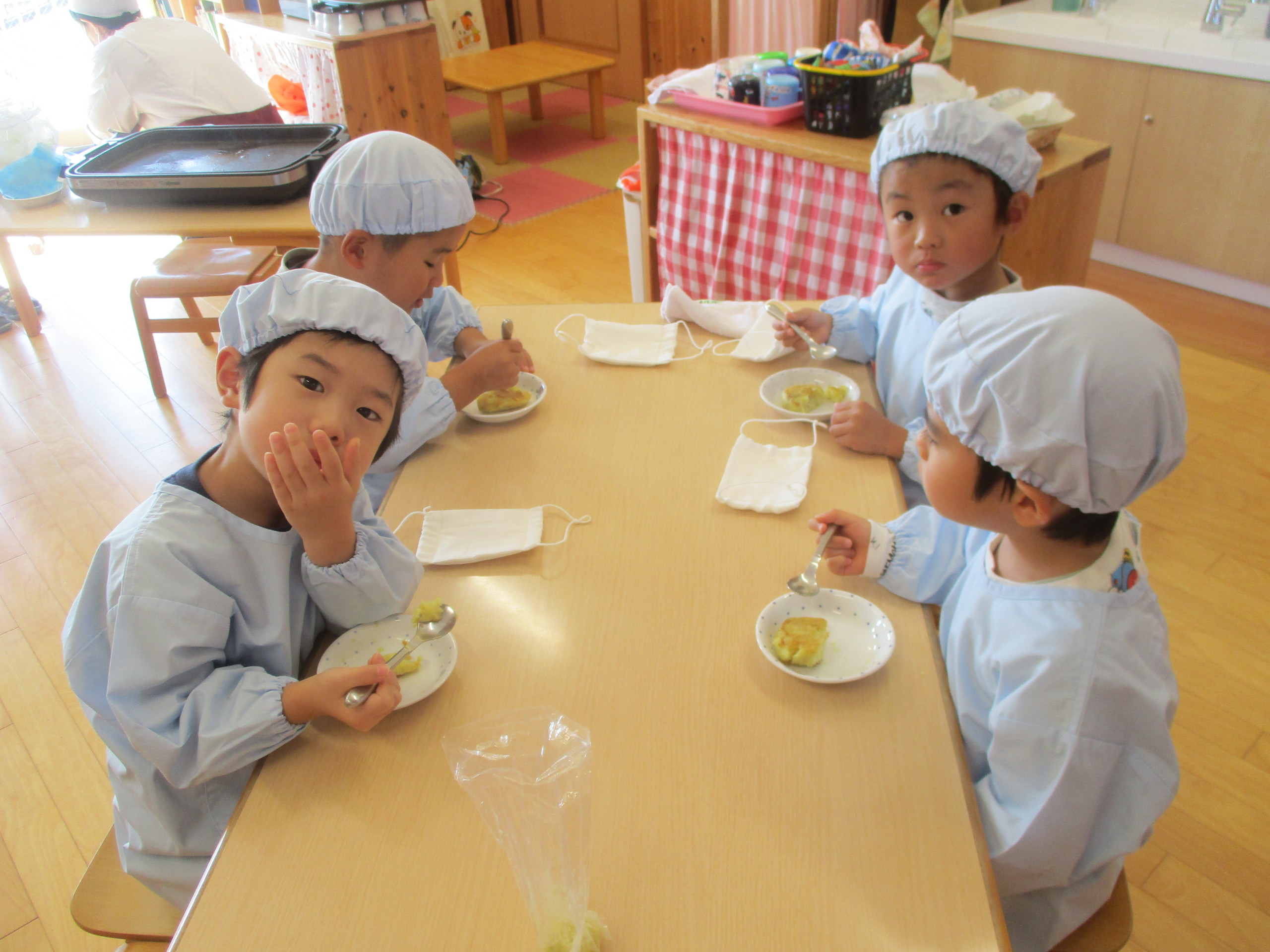 蒸かしたさつまいもは「いいにおーい!!」「はやく、たべたーい」と食欲をそそります💕