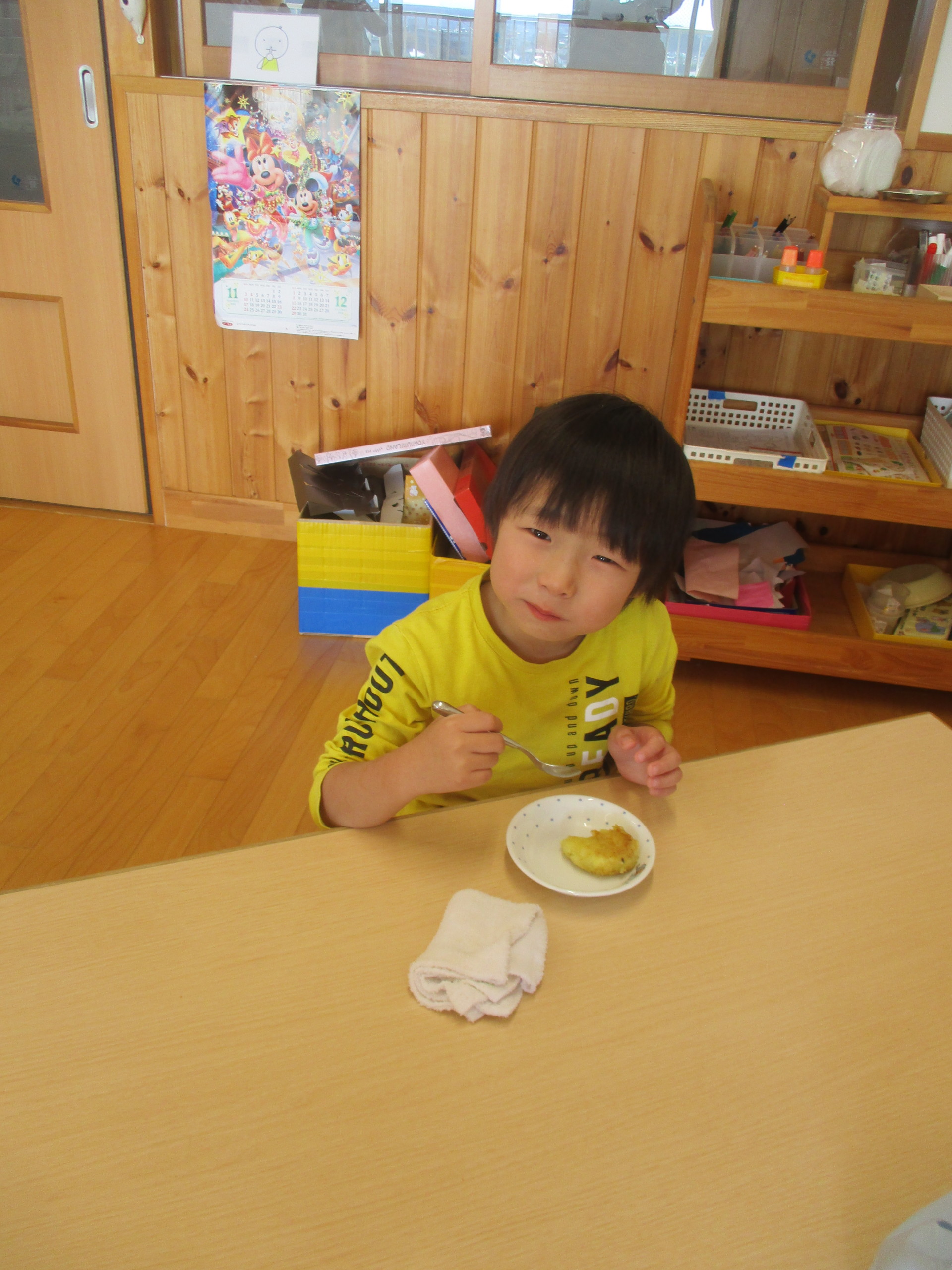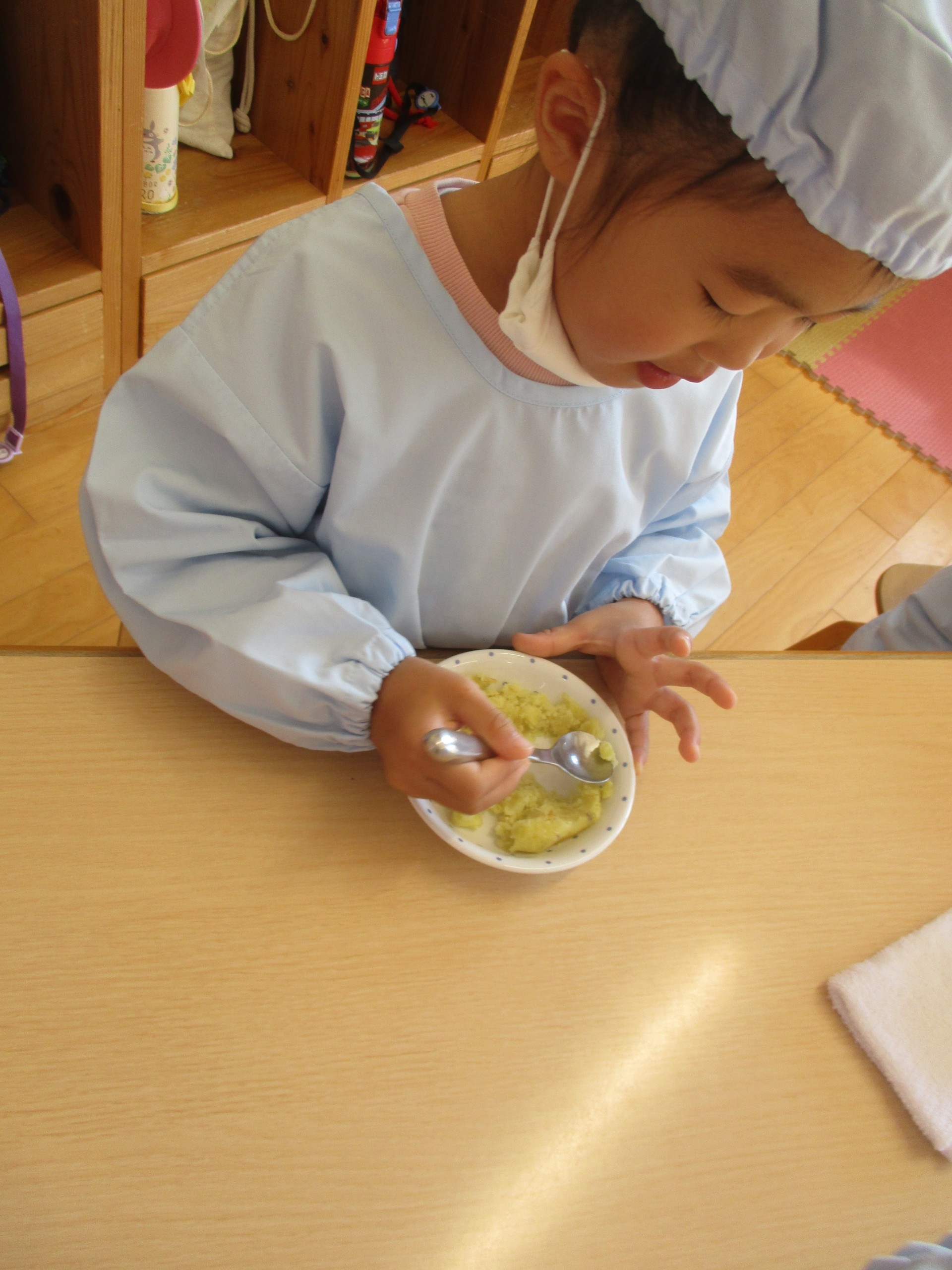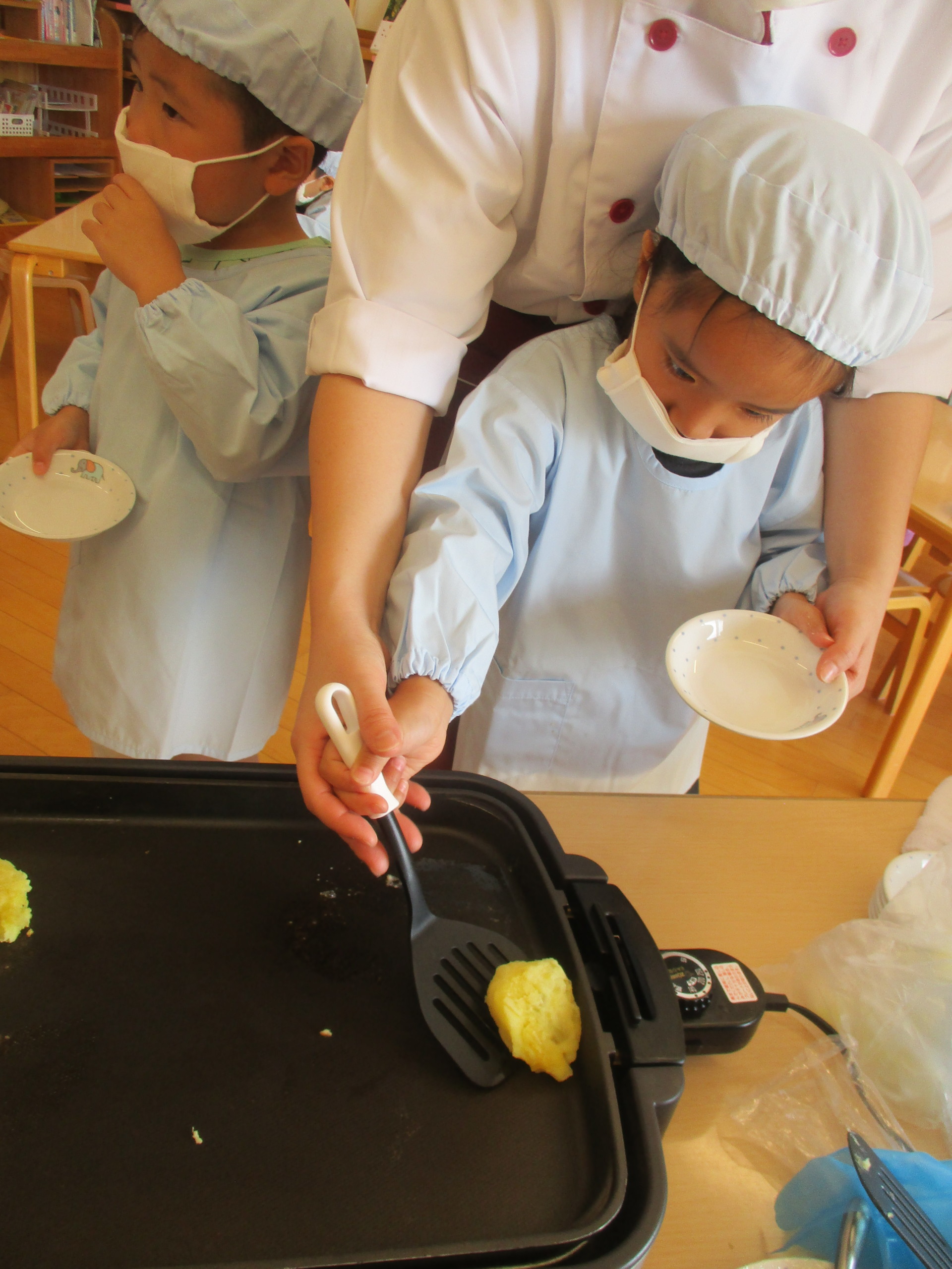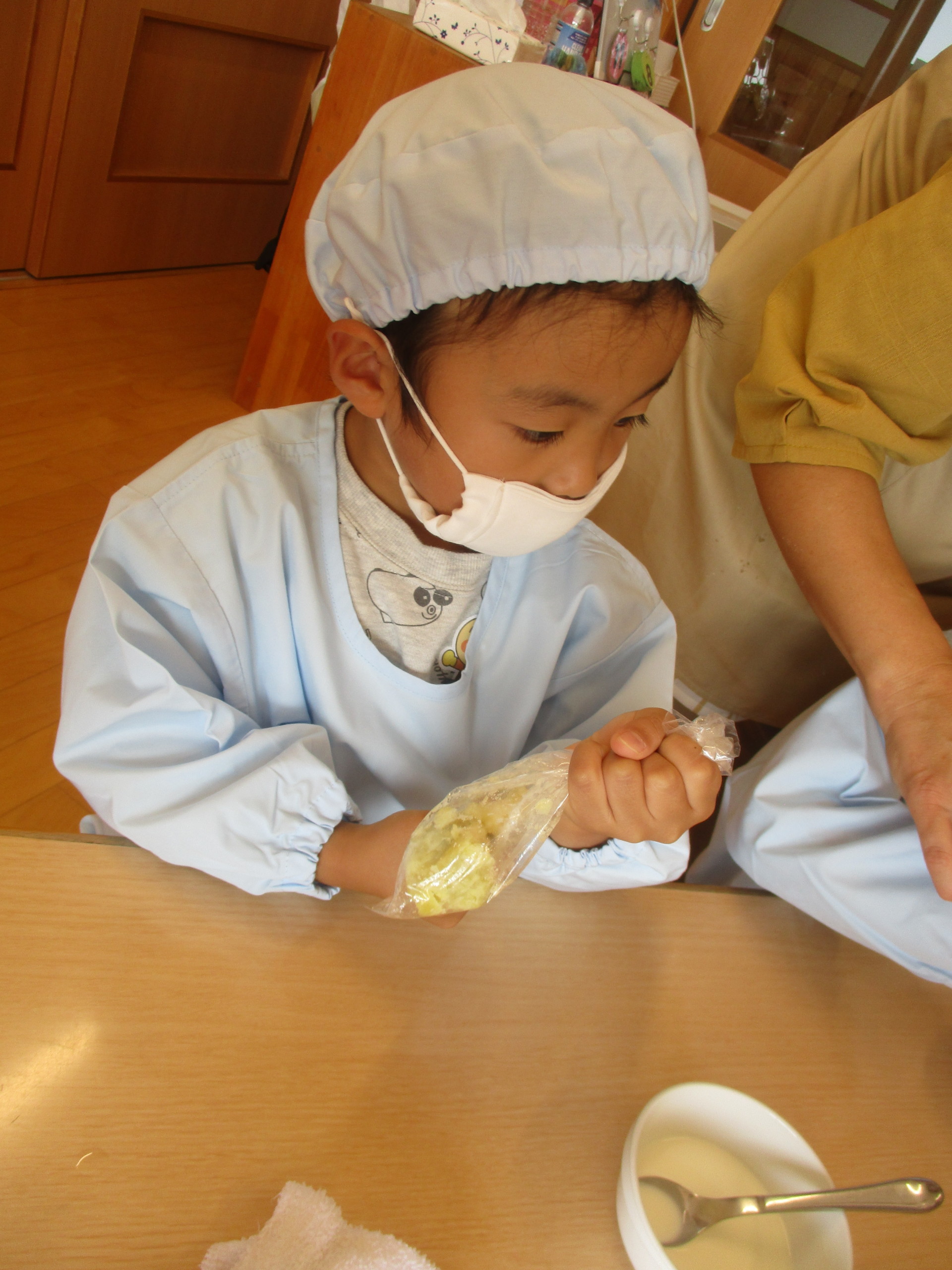 蒸かしたさつまいもは「いいにおーい!!」「はやく、たべたーい」と食欲をそそります💕