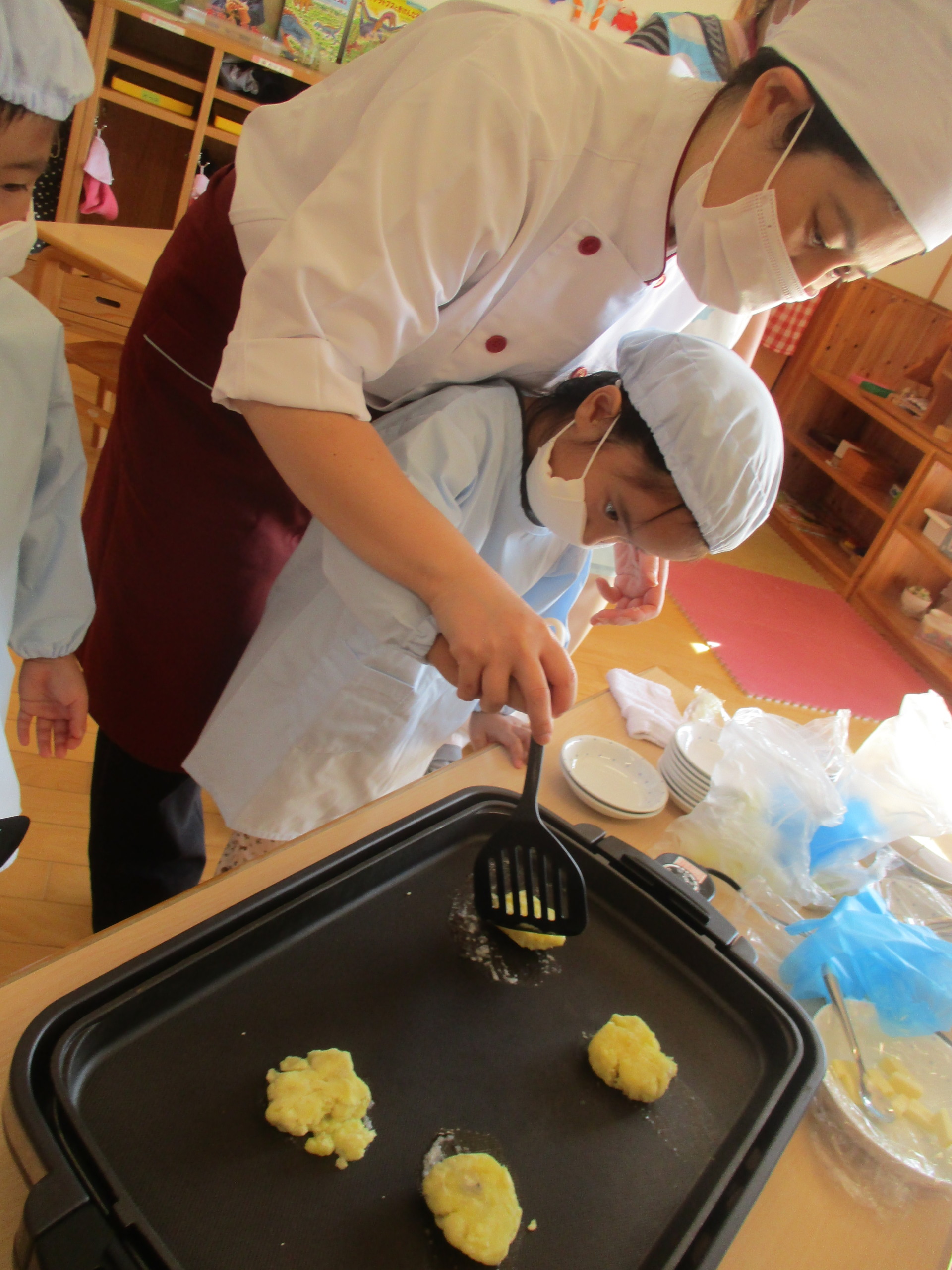 そこで、給食の先生がさつまいも🍠を使って一緒にお料理してくれることになりました