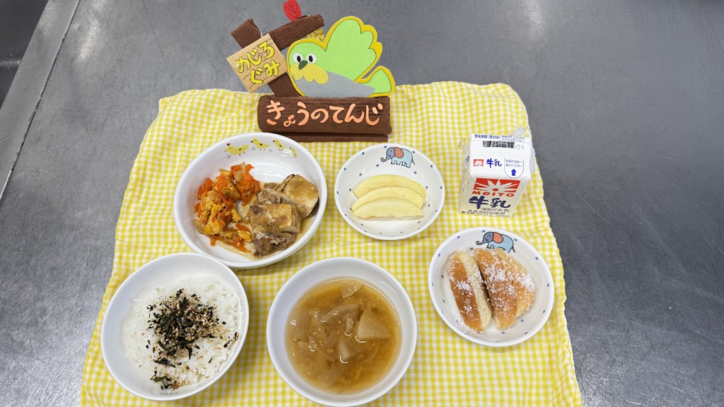 🍎今日のメニューもみんなよく食べてくれていました!!味噌汁の大根は園庭でとれたものを使用しています♪