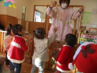 子ども達は嬉しそうに「サンタさんきたよ」と目をキラキラさせて教えてくれました。