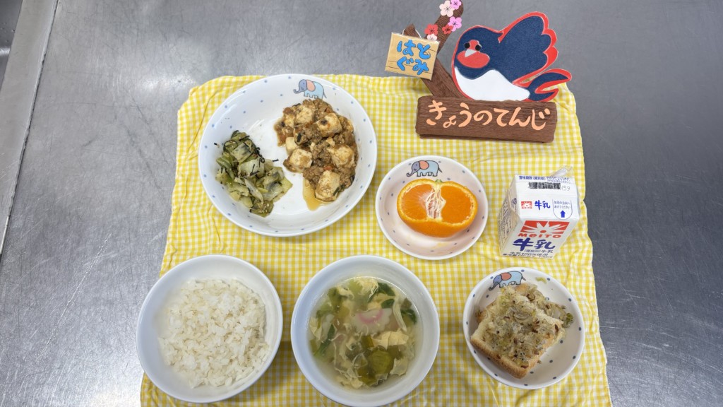 🍥今日は麻婆豆腐をごはんに乗せどんぶりにしたり、そのままおかずで食べたりと子どもの好みの食べ方を楽しんでいました🍚