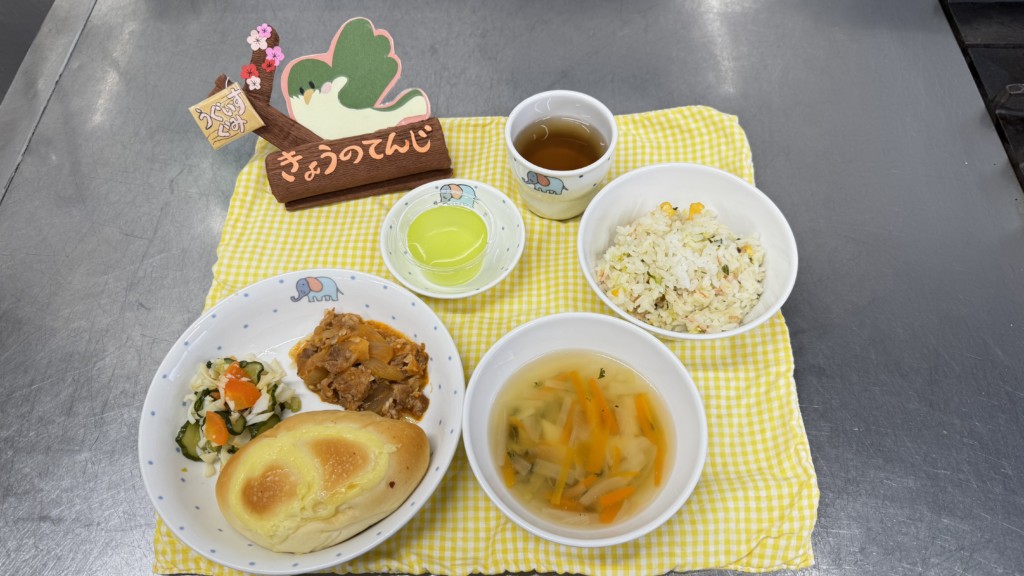 🧅今日のメニューは、はとぐみさんリクエストででていた、いかサラダとチーズパンでした!!みんなパンやサラダ美味しいと言ってくれていました😄