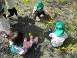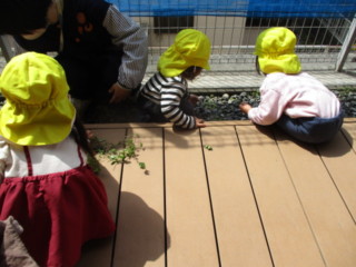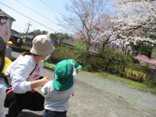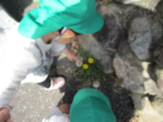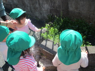 楽しい発見は園外へと広がり、散歩道の草花も「ツンツン」と触ったり、観察を楽しんでいます。