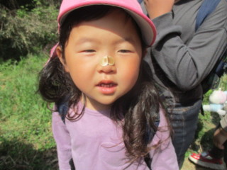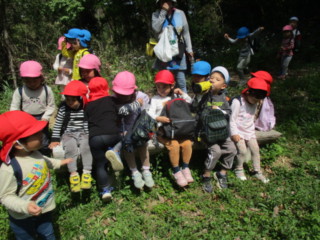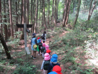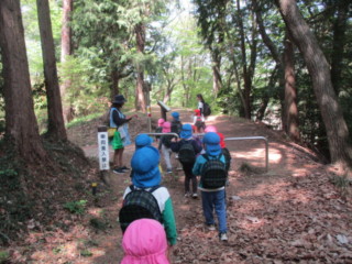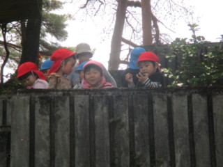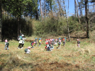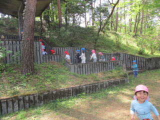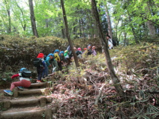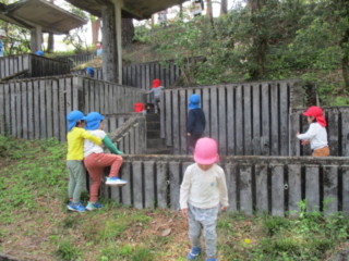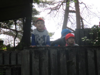 保育園裏の急な坂道を「ヨイショ、ヨイショ💦」と登ります。
