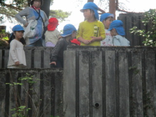 みんなで元気に「いってきまーす」と保育園に挨拶をして出発。