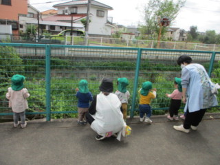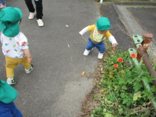 帰り道の坂道では石が転がっていく様や、風に吹かれて葉っぱが転がっていく様にもいつも以上に喜んでいた子供たちです!