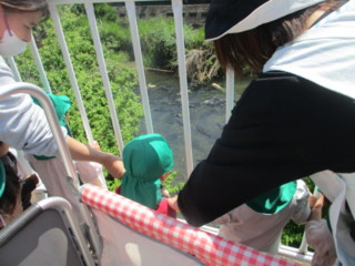 今日も水流がみんなの思いを乗せてパンを鯉へお届けしてくれました。