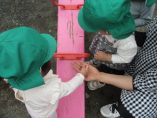 持ち帰って保育園のすべり台でも転がせている子ども達!