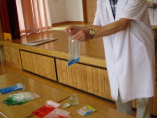 今年のテーマは光なのでこの後違う色水を混ぜて「色」について触れたい所でしたが・・・