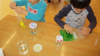 第三保育園科学遊び初のバルーンスライムに挑戦!