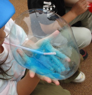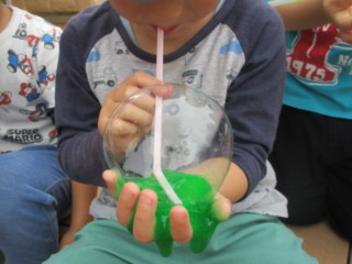 沢山の感覚を使って出来上がったバルーンスライムに大喜び!