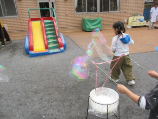 シャボン玉の作り方をレクチャーしてもらったら・・・仲良く、楽しく、チャレンジスタート!
