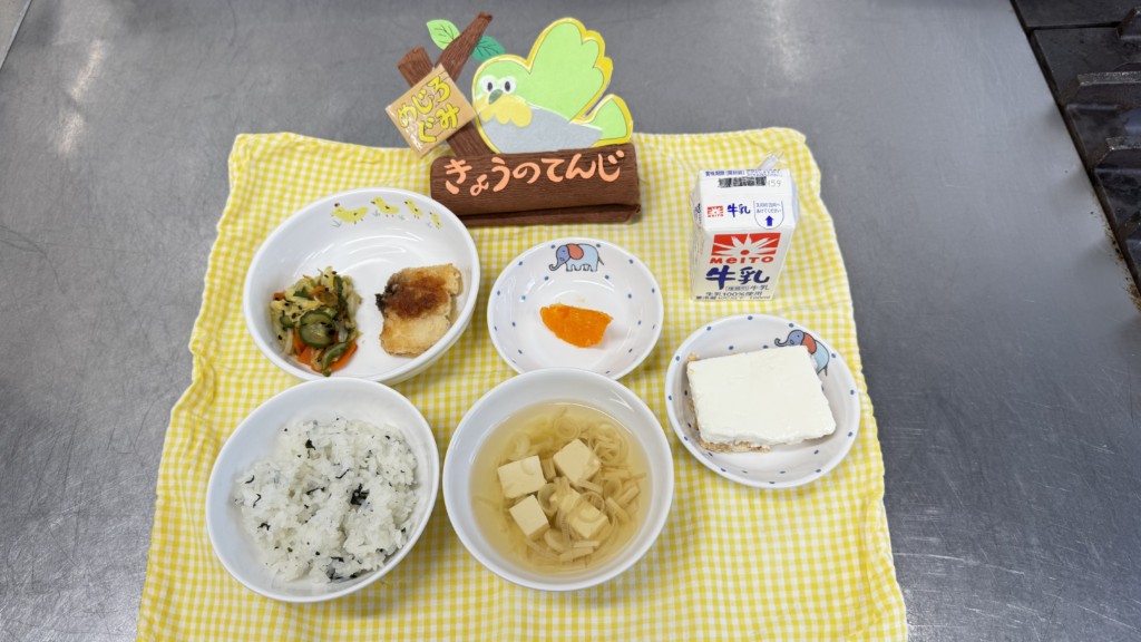 🌱今日のお魚は梅のソースがかかっているのですが酸っぱいという子もいましたがみんなおいしい😋と言って食べてくれていました!あと今日はヨーグルトの日なのでおやつがヨーグルトケーキになってます♪