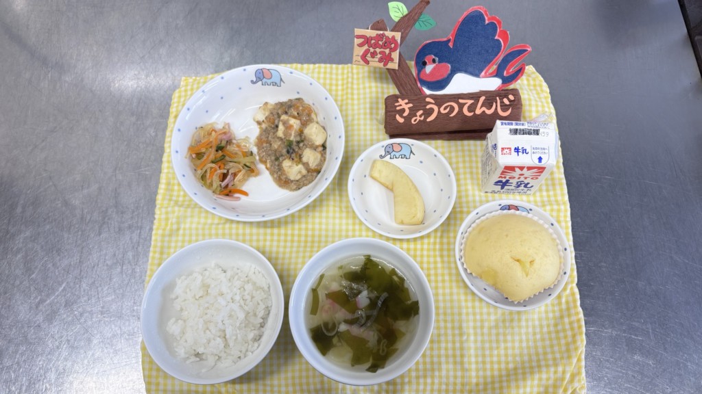 🍈麻婆豆腐はお皿に乗っていましたがみんな食具を上手に使って食べていました。子どもたちもおいしいよ~!と声をかけてくれました😊