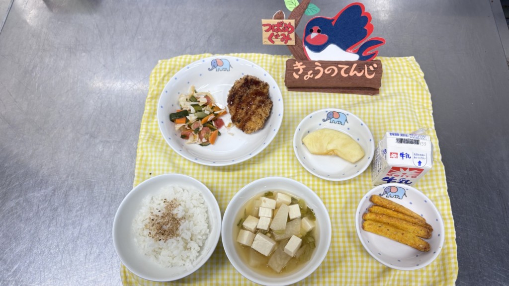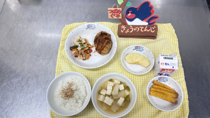 🍈保育園のメンチカツはキャベツ入りで食感が柔らかくできています。おやつのビスケットは人参とチーズ入りです🥕