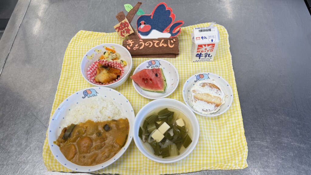 🌽今日は梅干しの日!!梅干を食べて「軟が去る」という言い伝えから、「7(なん)が30(さる)」の語呂合わせからこの日になったそうです!サラダのドレッシングに梅干しをたたいて入れて梅サラダにしました!カレーもみんなよく食べてくれていました😋