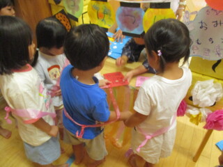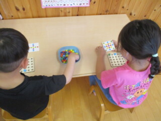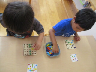3歳児でも内容を理解して、図と同じように並べる子もいました。