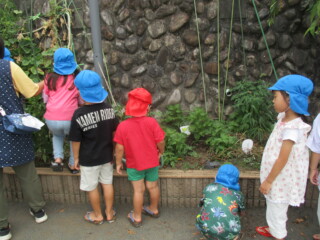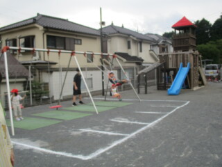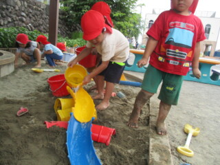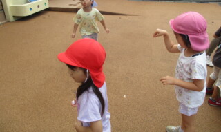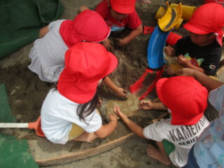 園庭で泥んこ遊びや、ボランティアのお兄さん・お姉さんたちと一緒に鬼ごっこを楽しんだりして遊びました。