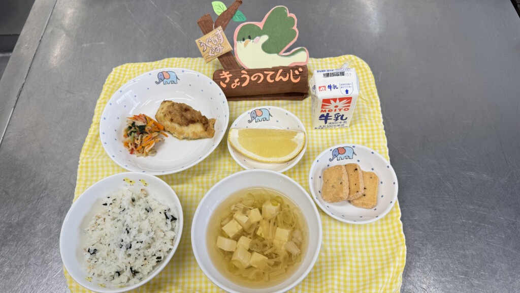 🍉今日のメニューは子どもたちの好きなわかめご飯♪お魚もよく食べてくれていました😋