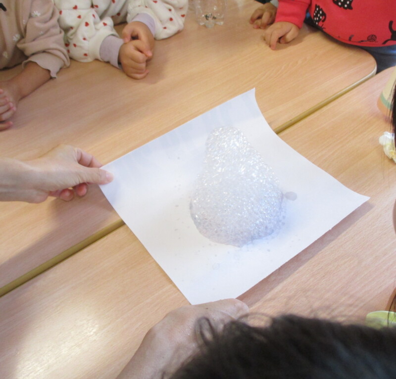 と子ども達が泡に興味を持った所にsteam教育研修で素敵な遊びを教えてもらいました。