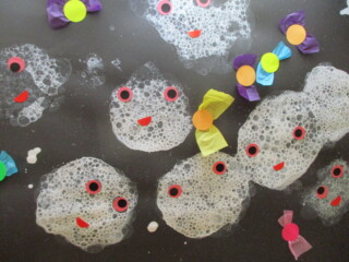 ハロウィンも近いから・・・と早速あわあわおばけ制作が始まりました。