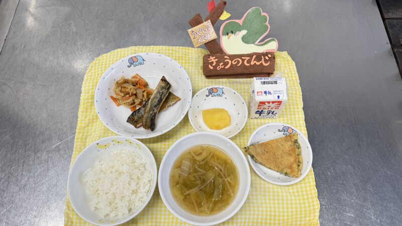 🥕旬のさんまを使ったかば焼きは柔らかく仕上がりました。切り干し大根の煮物もしっかりした味付けでご飯によく合います。子どもたちも美味しそうに食べていました。