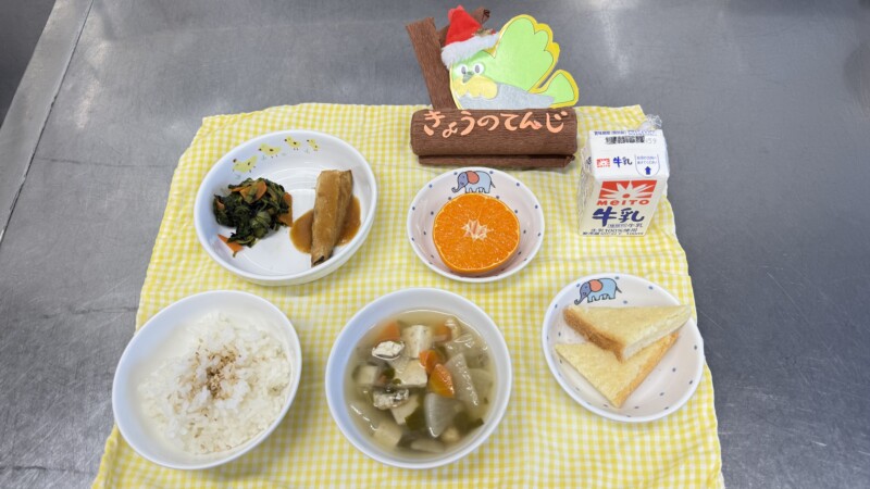 🍎旬の根菜がたくさん入ったけんちん汁。野菜のうまみが出ておいしく仕上がりましたが、たくさんの野菜に苦戦する子もいたようです😅
